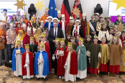 Ministerpräsident Alexander Schweitzer empfängt Sternsinger*innen in der rheinland-pfälzischen Staatskanzlei